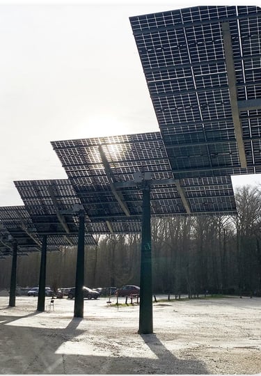 Le carport solaire SUNSHADE est une ombrière solaire héliotrope (technologie brevetée) conçue pour être installée sur n’importe quel parking dans les zones dépourvues d’électricité.